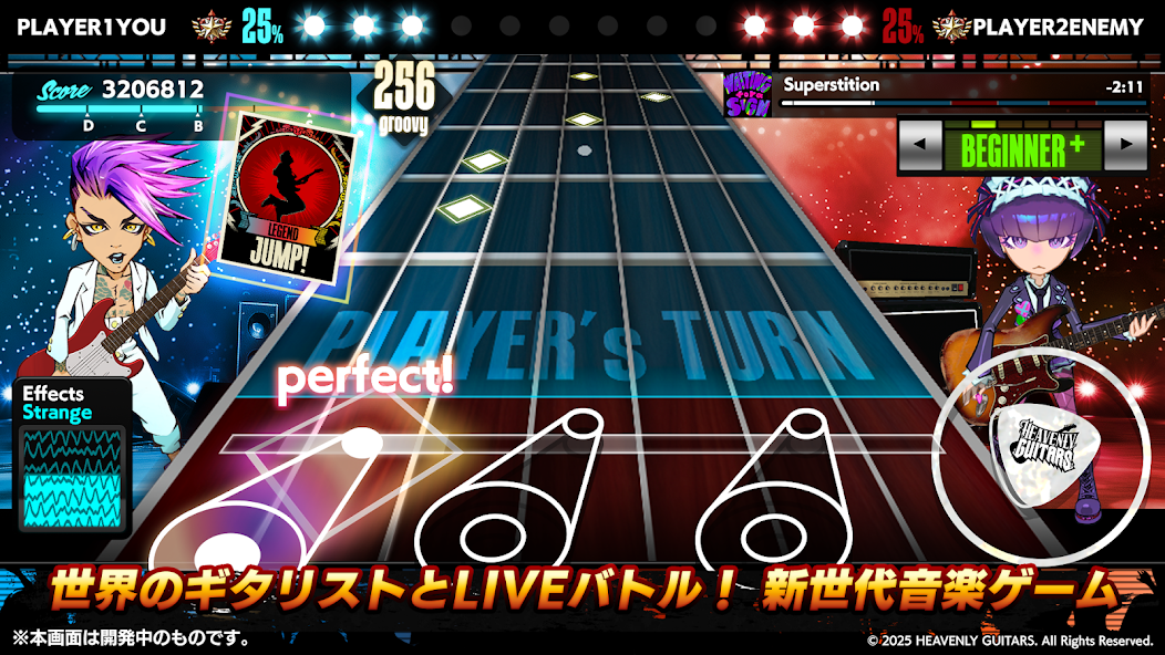 『Heavenly Guitars』では、従来のリズムゲームとは一味違う「対戦中の難易度チェンジ」が楽しめます♪